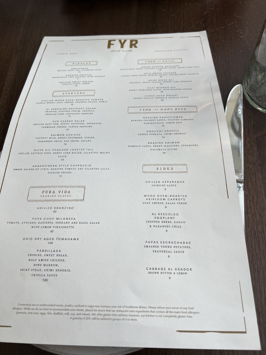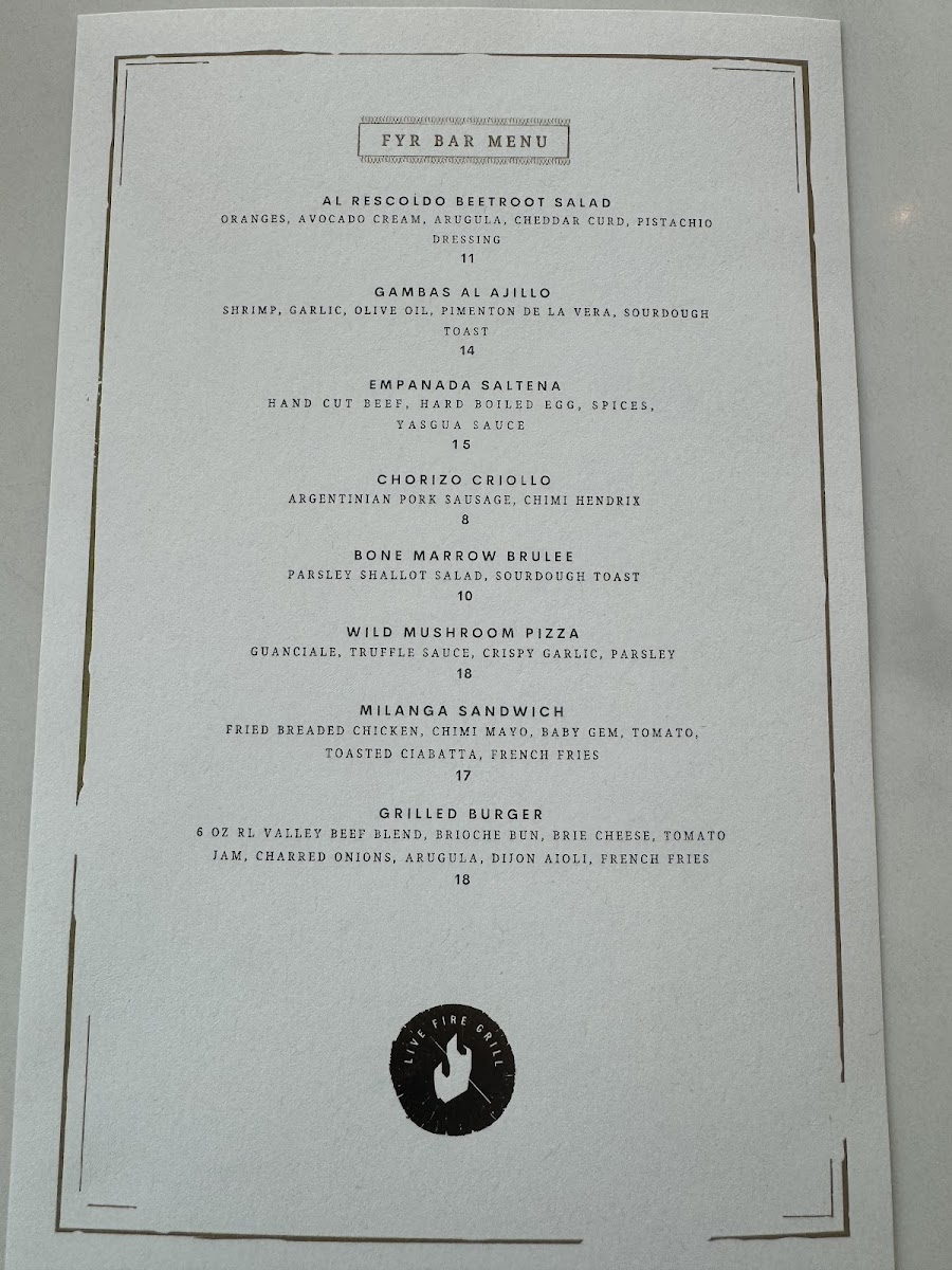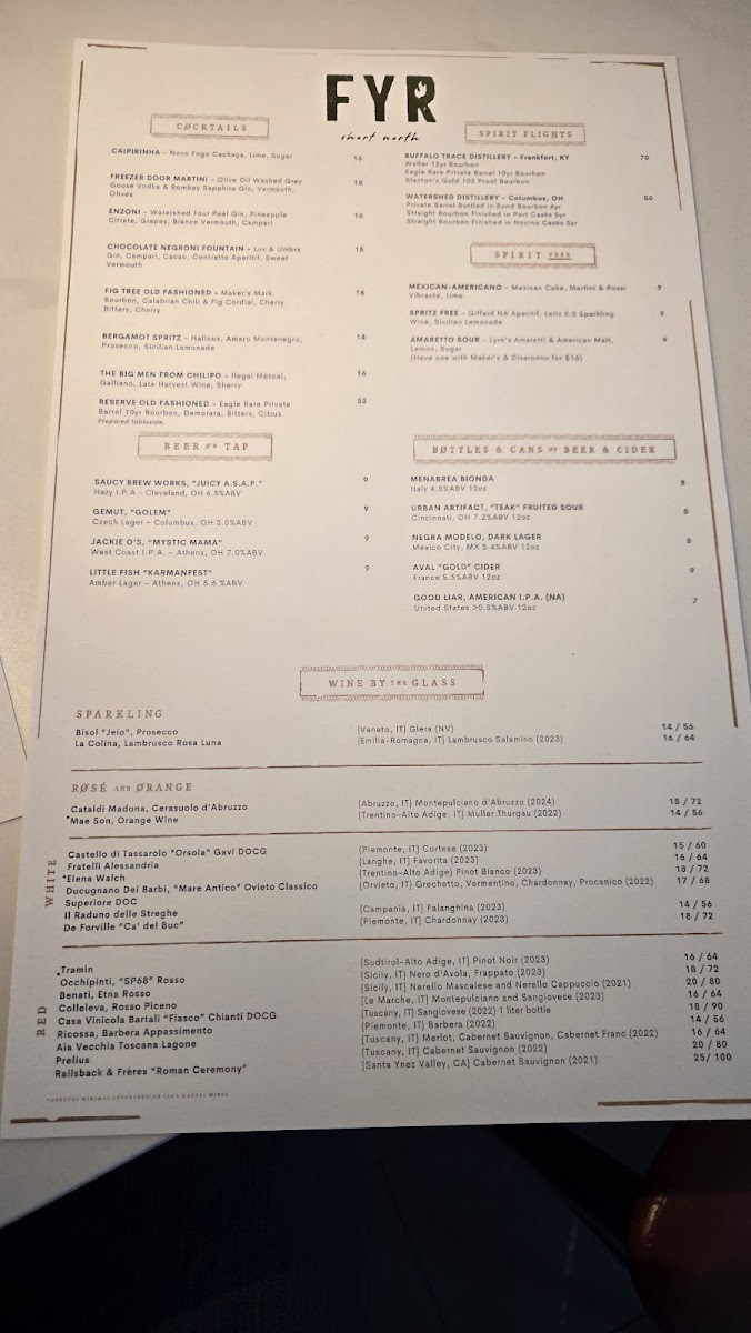 The Fyr Short North Menu offers a delightful selection of mouthwatering dishes, perfect for any occasion. Nestled at 404 N High St in Columbus, OH, this place invites you to explore a variety of flavors that are sure to satisfy every palate. Whether you're in the mood for a casual bite or something more refined, Fyr has something for everyone. From perfectly grilled steaks to fresh, flavorful seafood, each dish is crafted with care and attention to detail. You’ll also find inventive sides and sauces that elevate the meal experience. The menu has been thoughtfully designed to complement the restaurant’s cozy and welcoming atmosphere, making it the ideal spot for a relaxed dining experience with friends or family. Whether you’re stopping by for a quick lunch or settling in for a leisurely dinner, Fyr promises a memorable meal every time.